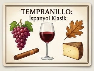 | Tempranillo | Orta / Tam | Kırmızı meyve, tütün | Et güveç |