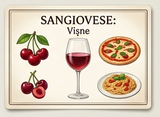 | Sangiovese | Orta | Vişne, asidite | Pizza, makarna |