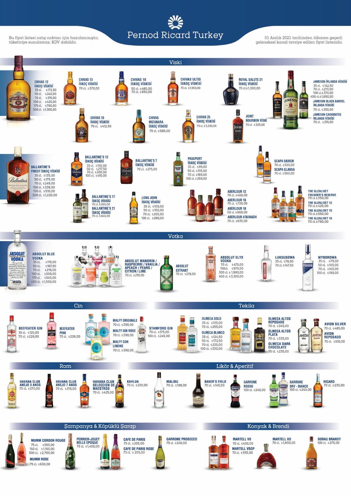Yukarıda belirtilen Ballantines viski fiyatlarının bazılar 01.12.2021 tarihinde geçerli olacaktır. Zamlı tam liste.